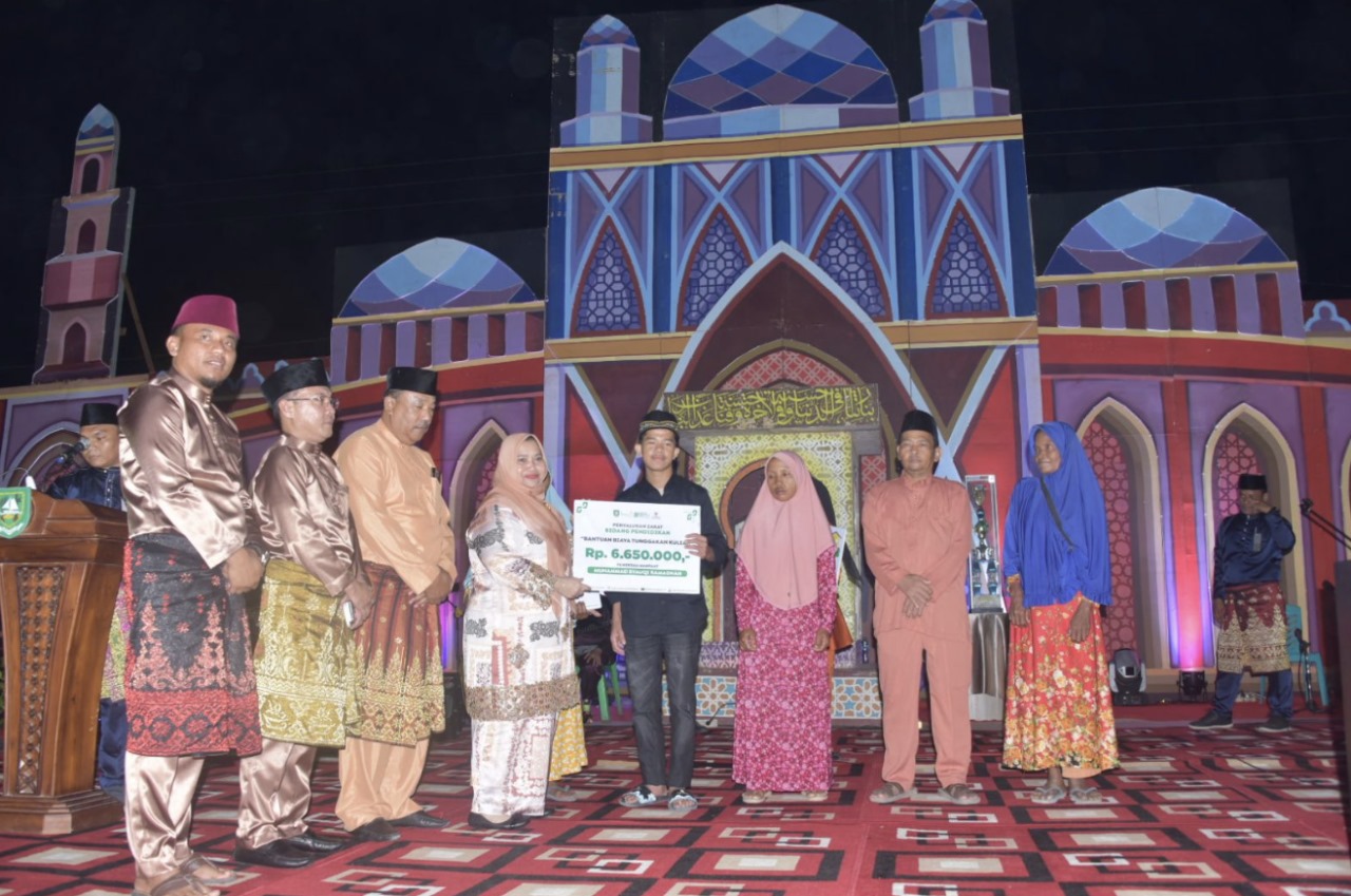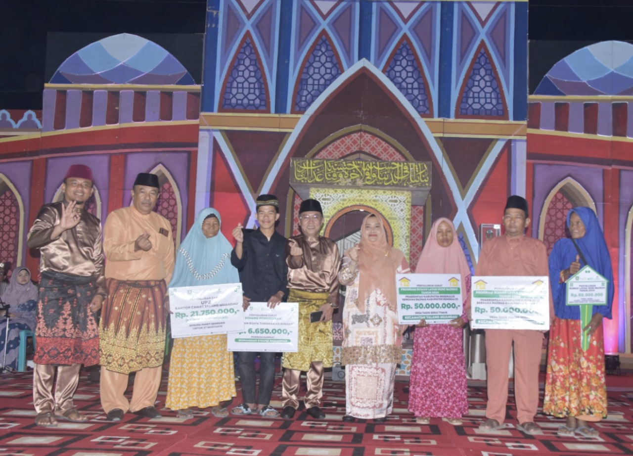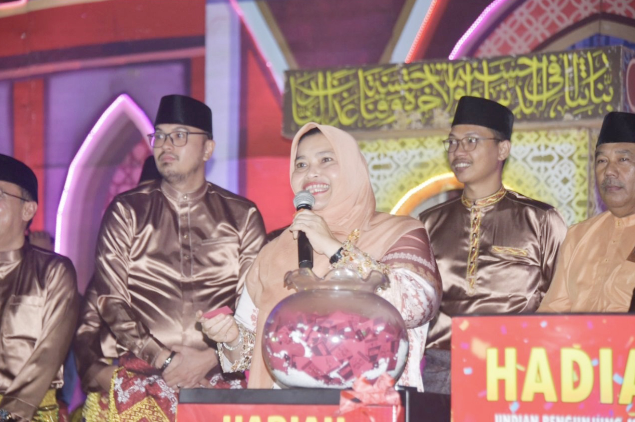 Pada kesempatan itu juga Bupati Kasmarni menyerahkan sejumlah bantuan dari Baznas Kabupaten Bengkalis, sekaligus pencabutan kupon berhadiah.