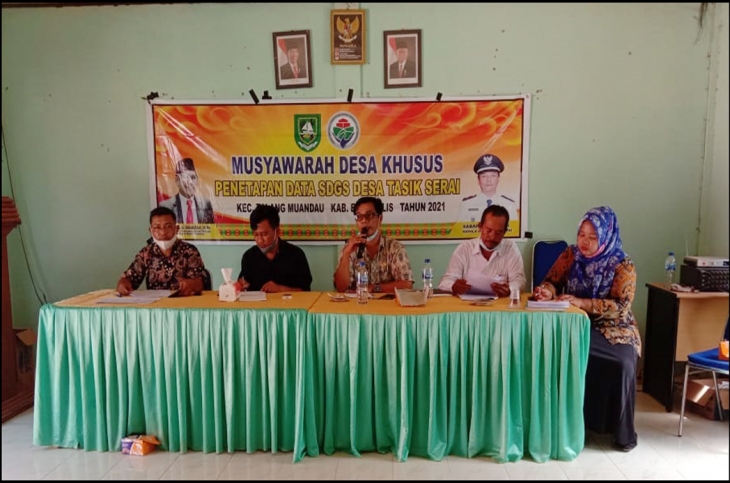 Hari kamis, 24 juni 2021 di Aula kantor Desa Tasik Serai telah di lakukan musyawarah desa khusus penetapan data SDGS Desa Tasik Serai data berbasis SDGS Desa, sangat penting digunakan pemerintahan desa dalam penggunaan dana desa dan sebagai landasan untuk menentukan arahan kebijakan pembangunan desa.data SDGS itu mutlak diperlukan dimanapun kita hidup.kita ini butuh data dan data itu harus valid,bukan hanya valid harus lengkap,bukan hanya lengkap tapi juga harus terus terupdate.data juga merupakan instrumen dalam upaya mendukung ketetapan penggunaan dana desa sekaligus mendukung pemerintah daerah agar bisa lebih datail dalam melihat permasalahan di daerahnya.