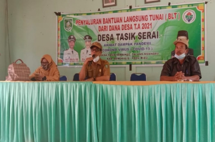 Pada hari selasa tanggal 29 juni 2021 di aula kantor desa tasik serai kecamatan talang muandau kabupaten bengkalis mengadakan penyaluran bantuan langsung tunai (BLT) yang berlangsung pada pukul 02:00 wib sampai dengan selesai yang berjumlah sebesar Rp.300.000 ribu rupiah untuk diserahkan kepada masyarakat desa tasik serai yang membutuhkan.