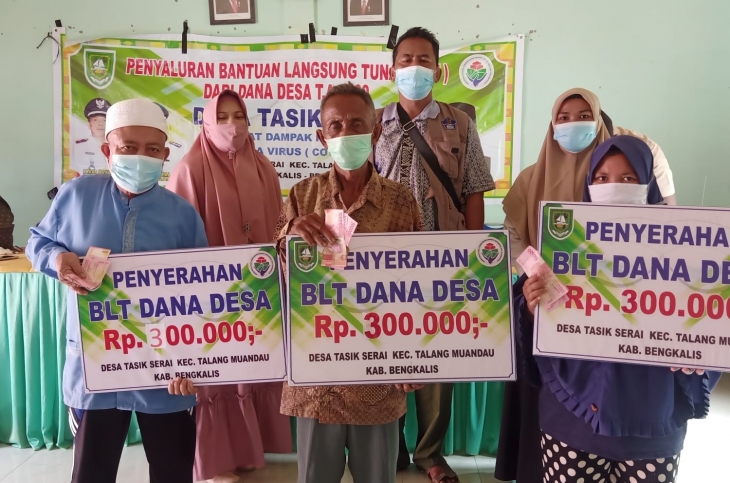 Pada hari jumat tanggal 06 Agustus 2021 bertepatan di Aula Kantor Desa Tasik Serai Kecamatan Talang Muandau Kabupaten Bengkalis pemerintah desa melakukan pembagian Bantuan Langsung Tunai (BLT) pada 150 KK kepada warga masyarakat yang kurang mampu,data penerimaan Bantuan Langsung Tunai (BLT) sangat fleksibel.hari ini bisa saja berkurang,bulan depan bisa saja bertambah karna situasi yang mengharuskan.Bantuan Langsung Tunai (BLT) Dana Desa di prioritaskan untuk warga desa yang kehilangan mata pencaharian dan belum mendapatkan jaring pengaman sosial lainnya.