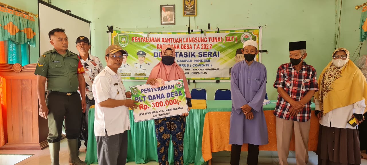 Pada hari ini, Rabu tanggal 16 November 2022 Pemerintah Desa Tasik Serai menyalurkan kepada KPM BLT DD sebanyak 103 orang. yang di hadiri oleh Bhabinkamtibmas Bapak Setiawan Sijabat, Pendamping Lokal Desa P3MD Ibu Roma Nurlaila, A.Md, Pendamping Desa Pembangunan Kabupaten Bengkalis Bapak Syafarudin, ST, Ketua BPD Desa Tasik Serai Bapak Warsimin, Kaur Kesra Ibu Yunda, Ketua Linmas Desa Tasik Serai dan Tokoh Masyarakat Desa Tasik Serai.